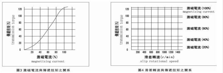 雙伸出軸磁粉離合器傳遞的轉(zhuǎn)矩與激磁電流基本成線性關(guān)系(正比例關(guān)系),只要改變激磁電流的大小,便可在較大的范圍內(nèi)控制扭矩的大小。如果激磁電流保持不變的話,其傳遞的轉(zhuǎn)矩是不受主動件與從動件之間的轉(zhuǎn)速差(滑差轉(zhuǎn)速)的影響,因此,對軸式磁粉離合器的靜摩擦轉(zhuǎn)矩與動摩擦轉(zhuǎn)矩基本是沒什么差異的,說明容易進行扭矩控制,如下圖: