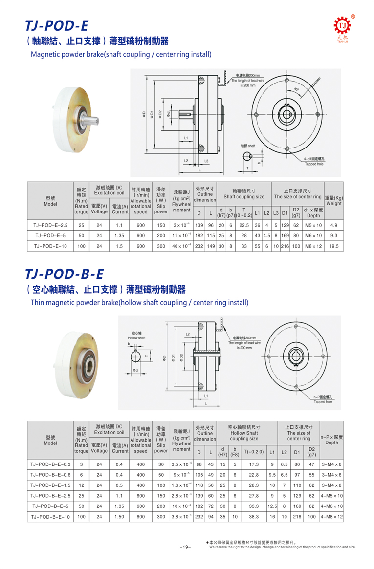 東莞天機(jī)傳動(dòng)廠家生產(chǎn)的空心軸薄型磁粉剎車(chē)器又稱(chēng)止口支撐薄型磁粉剎車(chē)器,額定轉(zhuǎn)矩:3-100N.m;額定電壓:DC24V;激磁線(xiàn)圈電流:0.4-1.5A。適用于放卷張力控制,磁粉剎車(chē)器還經(jīng)常被用于傳動(dòng)機(jī)械的測(cè)功加載和制動(dòng)等。