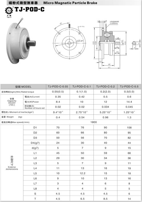 TJ-POD-C型微型磁粉制動(dòng)器型號(hào)可按扭矩規(guī)格分類: